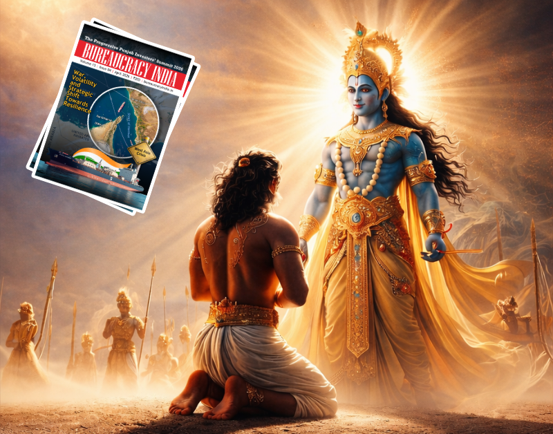 In the Bhagavad Gita, the setting is a battlefield – Kurukshetra. However, the real conflict is not between armies; it is within Arjuna. Torn by doubt, fear, and attachment, he stands unable to act. Krishna’s guidance is not merely strategic; it is psychological and spiritual. He reminds Arjuna that clarity, detachment, and self-mastery must precede action. The battlefield becomes a metaphor for the human condition.